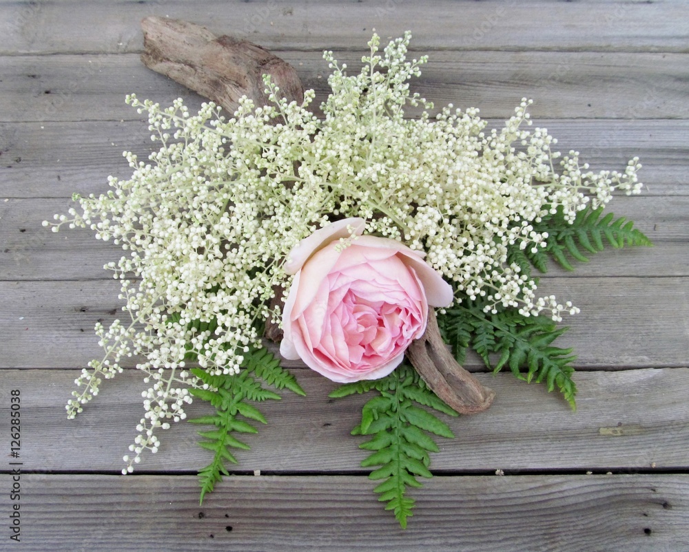 Ocean Spray Rose Ocean Spray Flowers Pink Rose Ferns And Driftwood Arrangement Stock Photo Adobe Stock